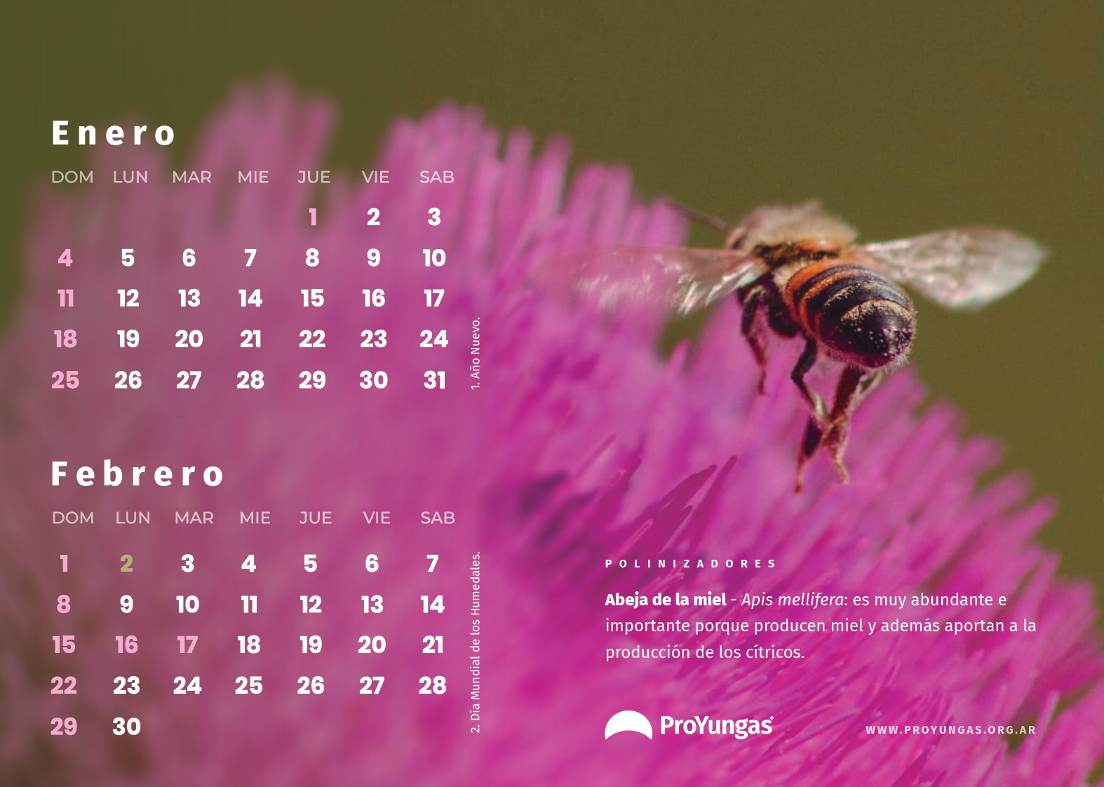 El calendario 2026 “*Polinizadores del Noroeste Argentino”, coeditado por la Fundación ProYungas y el IER, no solo organiza nuestros días, sino que también abre una ventana colorida y educativa al mundo de estos organismos clave. Cada bimestre pone en primer plano a un grupo diferente: desde las clásicas *Apis mellifera hasta los imponentes Bombus nativos como B. tucumanus, documentados en flor de cardo por la propia *Dra. Natacha Chacoff*, investigadora del IER especializada en ecología y evolución de interacciones planta-animal.